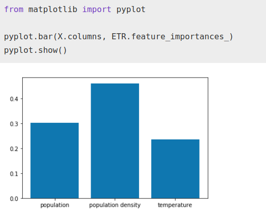 Mientras el factor de importancia que el algoritmo da a la temperatura ha aumentado con respecto a la población total, aún así sigue siendo bastante menor a la densidad de población como es normal.
